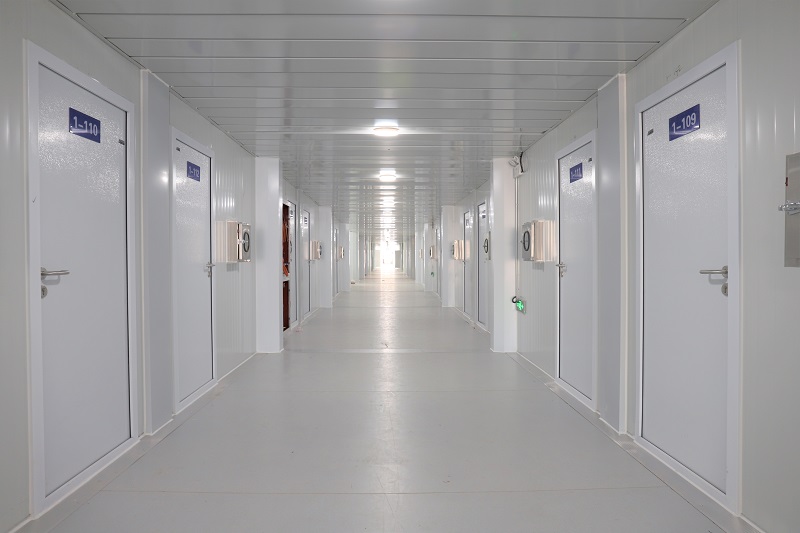 项目概况:九游登陆入口健康驿站(高新)选址位于承德附属医院南院区北侧,总占地面积70亩,规划建设集装箱房1733间(含连廊间),其中,隔离房间 971 间(1003张床位);功能用房269间;其他(廊道、楼梯间)493间。工程布局为四排三组团,地上两层集装箱结构。功能分区有隔离房11栋、办公用房3栋、综合用房1栋。总建筑面积31064㎡,其中隔离用房总建筑面积27586㎡,办公用房2001㎡,综合服务用房1086㎡,其他配套设施(门卫、垃圾暂存间、污水处理、化粪池等设施)300㎡。